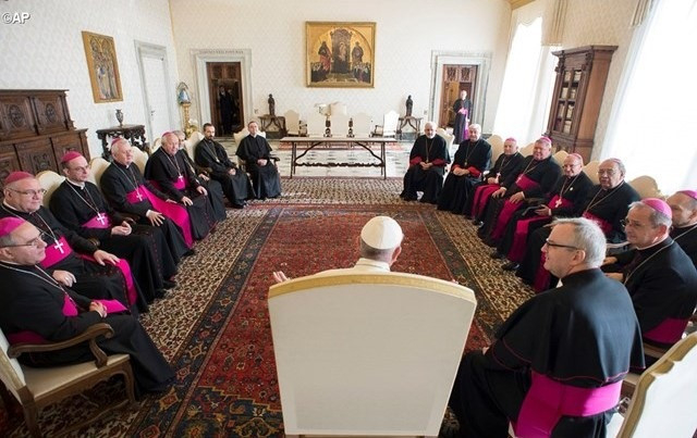 A főpásztoroknak mondott beszédében a Szentatya érintette a migráció kérdését, a világi hívek egyházban betöltött szerepét, a családpasztorációt, a fiatalok bevonását az egyház életébe, a papok folyamatos képzését, továbbá a romapasztorációt is.