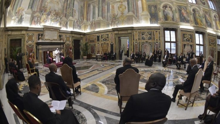 Ferenc pápa két fontos évfordulóra emlékeztette a nagyköveteket. Az egyik a XV. Benedek által „felesleges vérfürdőnek” nevezett I. világháború lezárulásának centenáriuma. Le kell vonni a két világháború tanulságait, amelyek az ENSZ megszületéséhez vezettek, és folytatni kell a világ népeinek és vezetőiknek meggyőzését arról, hogy a fegyveres konfliktusok értelmetlenek. Ehelyett az ellentéteket a türelmes párbeszéd és tárgyalás útján kell megoldani. A pápa reméli, hogy a nagykövetek szolgálata hozzájárul annak a nemes célnak a megvalósításához, hogy „megteremtsék az igazságosságon és a szereteten alapuló békét az emberek között, és biztosítsák a szükséges eszközöket ehhez” (Gaudium et spes, 77.).