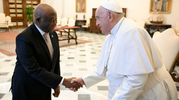Az alig több mint ötmillió lakosú ország Nyugat-Afrikában fekszik, az Atlanti-óceán partján. A Libériai Köztársaság a nyolcvanas évek közepe és a kétezres évek eleje között szörnyű belharcokat élt át, növekedési mutatói csak az utóbbi időben kezdtek javulni. Az ország élén tavaly november óta Joseph Nyuma Boakai áll, aki pénteken mintegy húsz perces megbeszélést folytatott Ferenc pápával, majd Pietro Parolin bíboros államtitkárral és Paul Richard Gallagher érsekkel, a Szentszék államközi kapcsolatokért felelős titkárával egyeztetett.