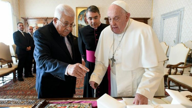 Mahmúd Abbász palesztin elnök adta át az ajándékot a Szentatyának, akivel közel félórás beszélgetést folytatott csütörtök délelőtt.