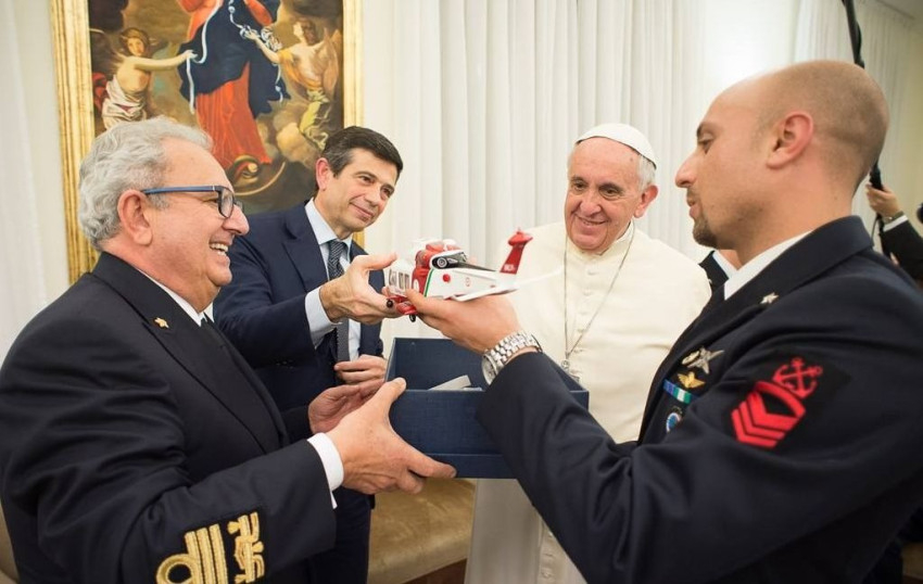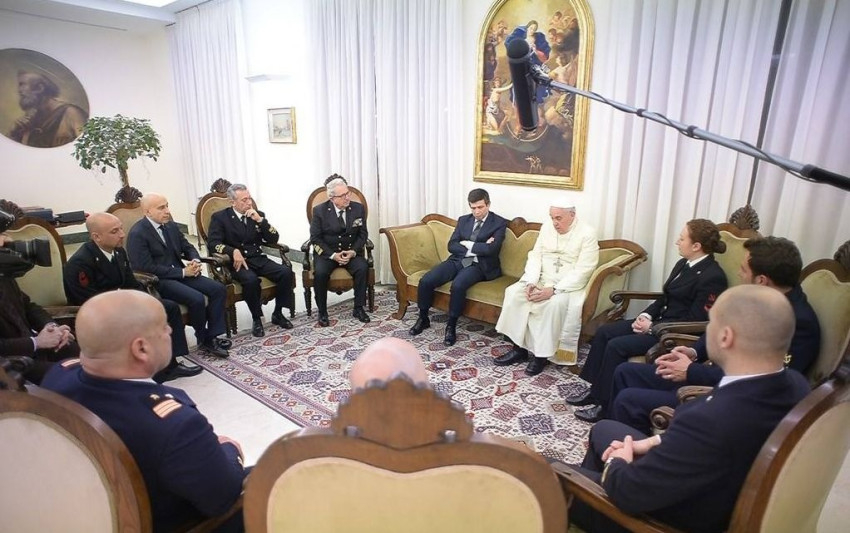 A delegációt elkísére Maurizio Lupi infrastruktúráért és közlekedésért felelős olasz miniszter. Ferenc pápa meghallgatta a parti őrség „konkrét, megható és megrendítő tapasztalatait”, majd biztosította őket arról, hogy nagyra értékeli a legszegényebbekért végzett bátor és odaadó szolgálatukat.