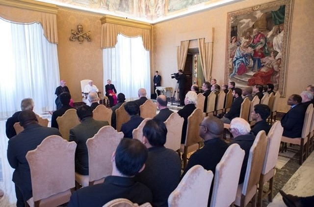 A Szentatya az előre megírt beszédét átadta a szerzeteseknek, majd a leköszönő szerzetes-elöljáró beszédére reagálva kötetlen szavakkal fordult a káptalan tagjaihoz.