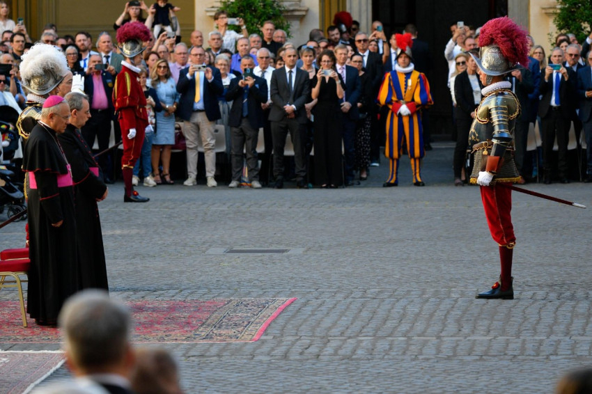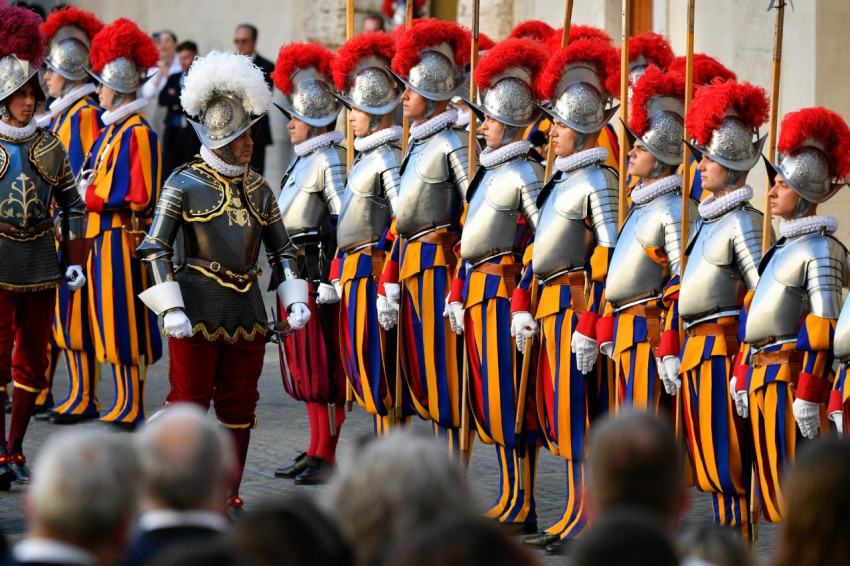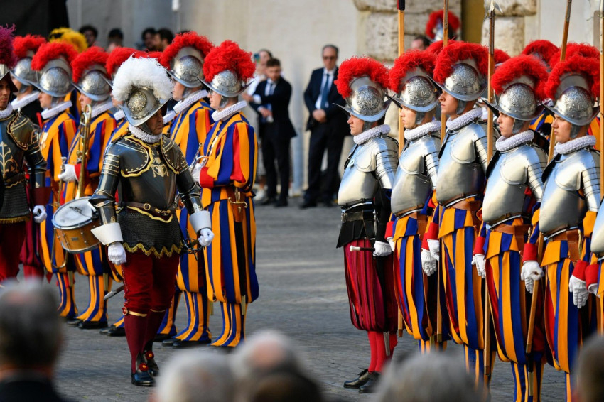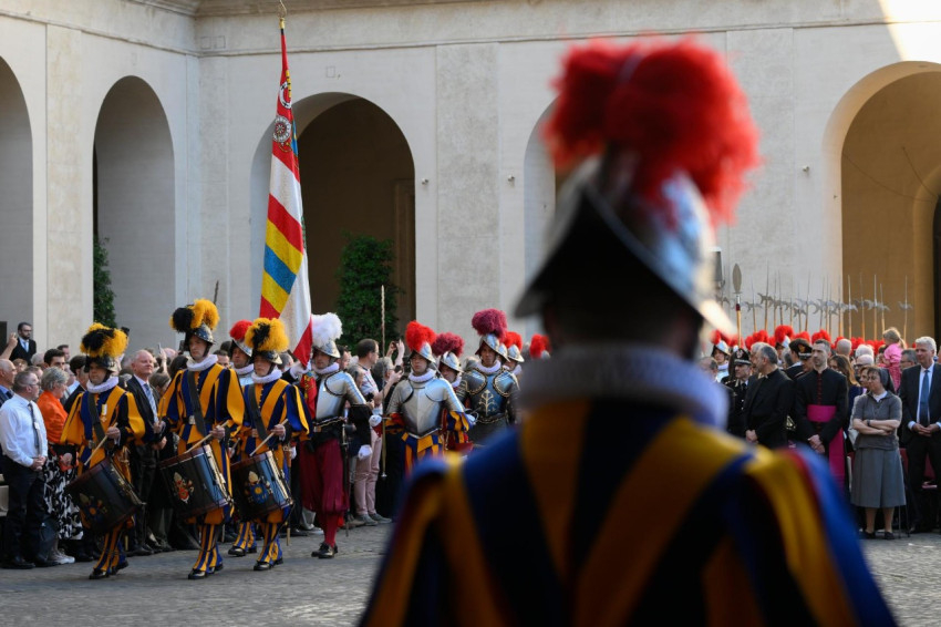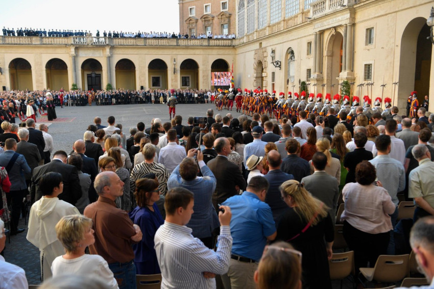 Szombat reggel a gárda 23 újoncának eskütétele alkalmából a svájci származású Kurt Koch bíboros, a Keresztény Egység Előmozdítása Dikasztériumának prefektusa mutatott be szentmisét a Szent Péter-bazilikában. Az újoncok eskütételének ünnepélyes és hagyományos szertartására szombaton délután öt órakor került sor az Apostoli Palota Szent Damázusz-udvarán. Ferenc pápa szombaton délelőtt fél tízkor fogadta a dolgozószobájában Viola Amherd asszonyt, a Svájci Államszövetség alelnökét és kíséretét, akik az eskütételre érkeztek.