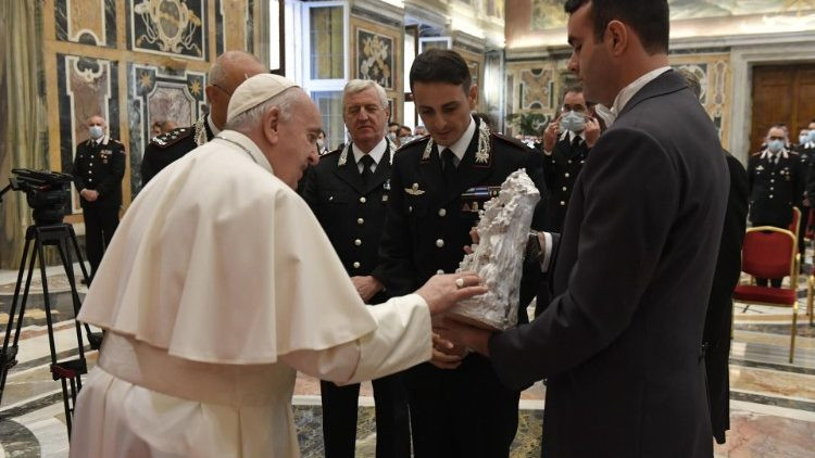 A rendőrök tevékenysége megkívánja, hogy az előírt szabályokat betartassák az emberekkel, továbbá hogy türelmesen és készségesen álljanak a hozzájuk forduló személyek rendelkezésére. Szakmai felkészültségük és felelősségérzetük kifejezi és megerősíti a szolidaritás érzését a társadalomban. A Vatikán és a város más részein végzett szolgálatuk során kiemelt figyelmet kell hogy fordítsanak az elesett és hátrányos helyzetű személyekre, különösen is az idősekre. Ezt elősegíti az a bizalom és a közjó iránti elkötelezettség, amely rendszerint összeköti a rendőröket és az embereket. Aki találkozik egy rendőrrel, tudja, hogy számíthat a segítségére. Ez még inkább méltó az elismerésre, amikor titokban történik, mindennapi szolgálatuk apró, de jelentőségteljes gesztusai által. Ha elöljáróik nem is látják ezeket a rejtett cselekedeteket, Isten látja, és nem felejti el őket – hangsúlyozta a pápa.