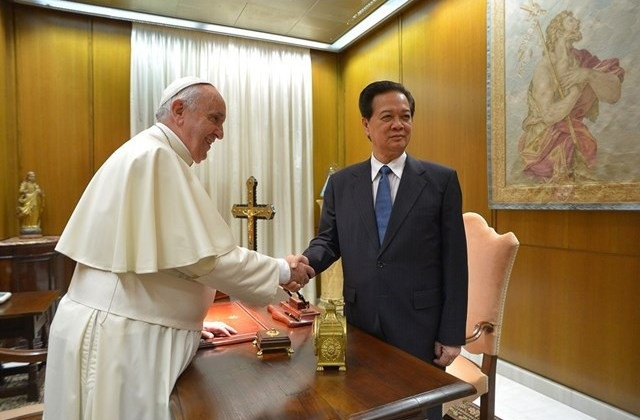 A pápa és a miniszterelnök kiemelték az egyháznak azt az elkötelezettségét, amellyel hozzájárul az ország fejlődéséhez, annak köszönhetően, hogy az egész társadalom javát szolgálva jelen van különböző területeken. Ebben az összefüggésben ismételten leszögezték: nagyra becsülték azt a támogatást, amelyet a hatóságok nyújtottak a katolikus közösségnek a 2013-as alkotmány által szentesített fejlesztési keretet illetően a valláspolitikában, valamint azt a segítséget, amelyet a Szentszék nem rezidens pápai képviselőjének nyújtottak Vietnámban, küldetése teljesítésében, melynek célja az egyház és az állam közötti kapcsolatok előmozdítása, a közös cél, a diplomáciai kapcsolatok létrehozása érdekében.