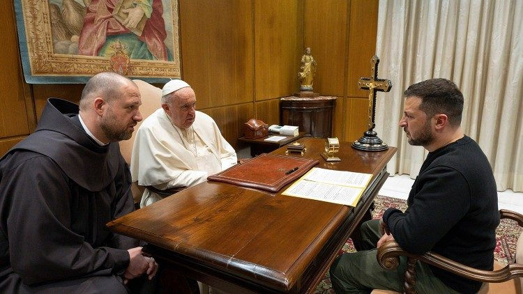A Szentatya és az ukrán elnök találkozása során Marko Gongalo ferences szerzetes tolmácsolt, aki a vatikáni Államtitkárságon dolgozik. A mintegy negyven percig tartó találkozó középpontjában a jelenleg zajló háború okozta ukrajnai humanitárius és politikai helyzet állt.