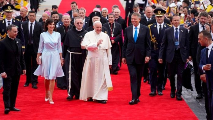 Az egyházfő a Cotroceni palotában további állami köztisztviselőkkel és egyházi elöljárókkal találkozik.