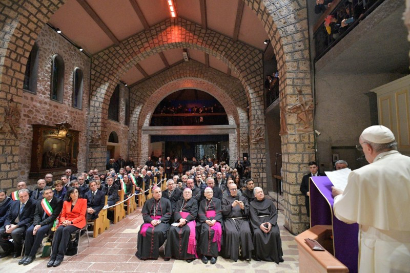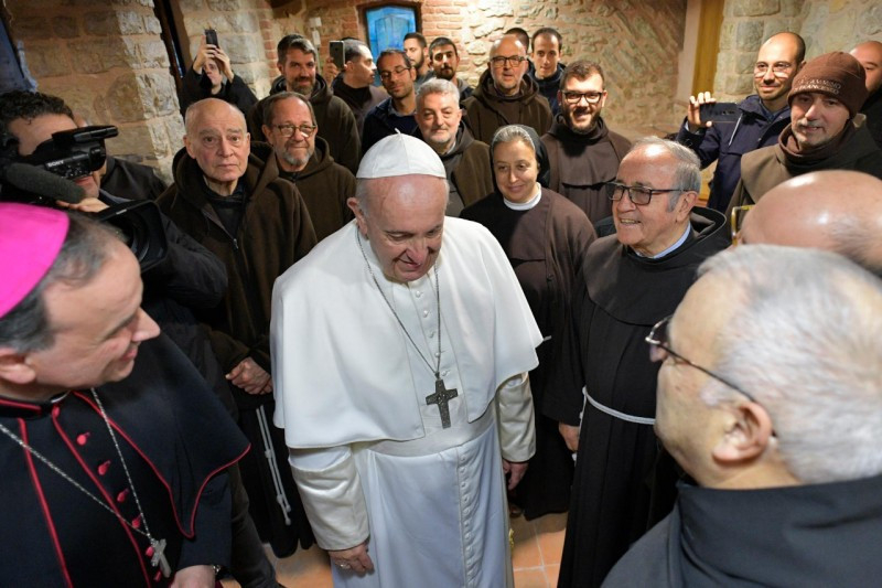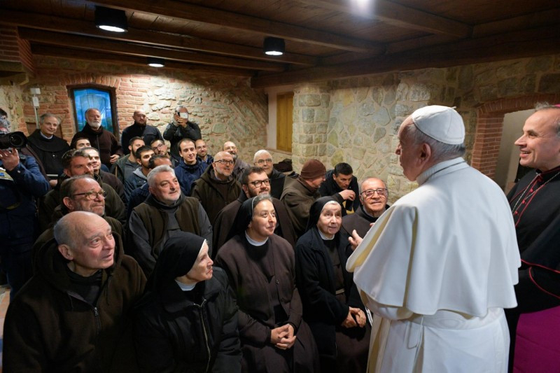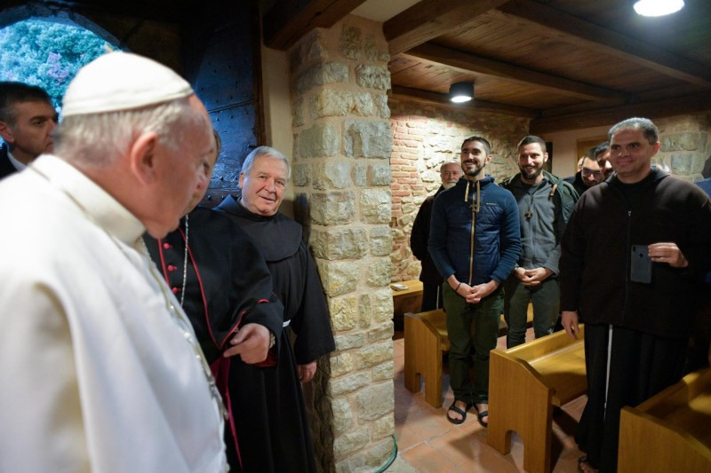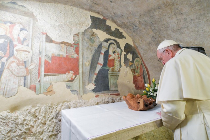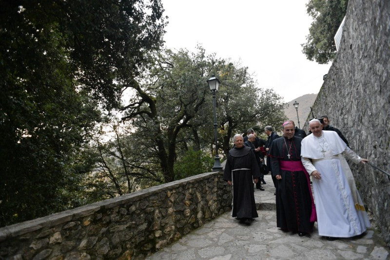 Milyen sok gondolat kavarog ezen a szent helyen az ember fejében! De a Szent Ferencnek oly kedves hegyek sziklái előtt mindenekelőtt arra kapunk meghívást, hogy fedezzük fel újra az egyszerűséget.