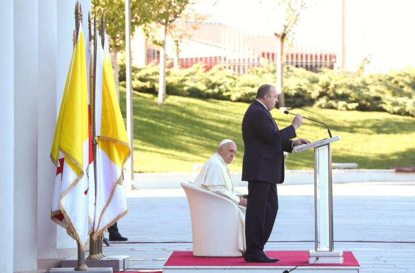 A pápa hálát adott a Mindenható Istennek, amiért lehetőséget nyújtott számára, hogy meglátogassa Grúzia áldott földjét. Az ország, amely kultúrák és civilizációk létfontosságú találkozásának helye, már a IV. századtól kezdve, Szent Nino apostolnő hithirdetése nyomán a kereszténységben találta meg legmélyebb önazonosságát és értékeinek biztos alapzatát.