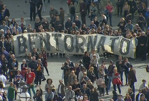 Köszöntöm a sevillai, cádizi, ceutai (Spanyolország), valamint a trieszti, coratói és torinói híveket. Külön gondolok a XXIII. János Pápa Közösségre, amelyet Isten szolgálja Don Oreste Benzi alapított, és amely jövő pénteken Róma központjának utcáin keresztutat szervez szolidaritásként és imádságként az emberkereskedelem áldozataivá vált nőkért.