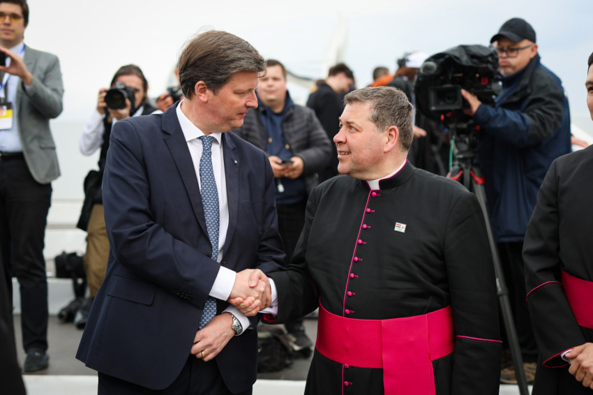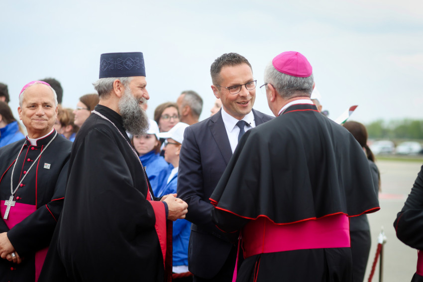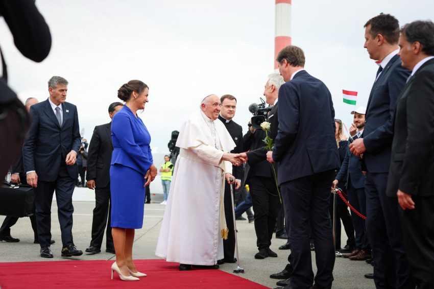 Ferenc pápát állami részről Novák Katalin köztársasági elnök, Semjén Zsolt nemzetpolitikáért, egyházügyekért és nemzetiségekért felelős miniszterelnök-helyettes, Fülöp Attila, a Belügyminisztérium gondoskodáspolitikáért felelős államtitkára, Latorcai Csaba területfejlesztésért felelős miniszterelnökségi parlamenti államtitkár és Habsburg Eduárd szentszéki magyar nagykövet búcsúztatta.