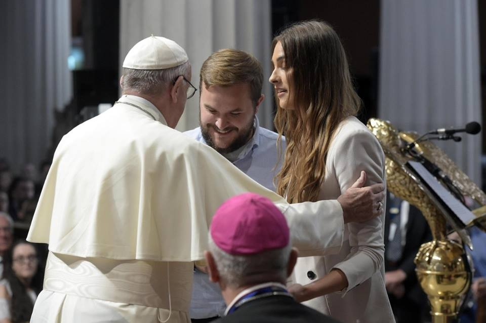 Augusztus 25-én, szombaton délután Ferenc pápa a Családok IX. Világtalálkozója alkalmából házaspárokkal találkozott és beszélgetett Dublinban, a Szűz Mária-székesegyházban.