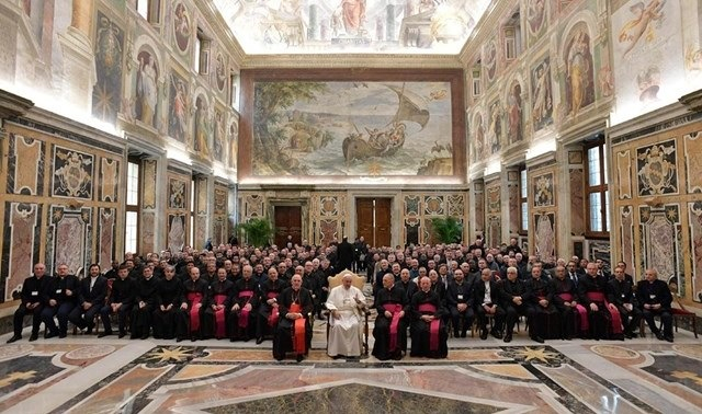 A szentatya hozzájuk intézett beszédében rövid foglalatát adta a házasság szentsége katolikus értelmezésének, majd tanácsokkal szolgált, melyek a családszinódus után előállt új lelkipásztori helyzetben segítik a papságot: „Legyetek közel a házaspárokhoz minden körülmények között, a Krisztusban kötött szentségi házasságban élők mellett éppúgy, mint az együtt élők esetében!”
