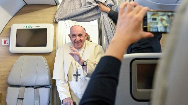 A nur-szultani (Kazahsztán fővárosának nevéről éppen a pápalátogatás idején történt elnöki döntés, visszanevezik Asztanára – A szerk.) repülőtéren a pápát Kazahsztán elnöke, Kaszim-Zsomart Tokajev búcsúztatta az elnöki terminál VIP-termében, ahol egy rövid zárt körű találkozóra került sor. Az államfő egy dombrát, egy hagyományos kazah hangszert ajándékozott a Szentatyának, amelyre a pápa kedd esti első, a helyi közélet szereplőihez intézett beszédében utalt. A díszőrség és a küldöttségek köszöntése után a pápa felszállt az Ita Airways Airbus A330-as repülőgépére, hogy visszatérjen Olaszországba. A visszaút során szokásához híven sajtótájékoztatót tartott a vele utazó mintegy nyolcvan újságírónak.