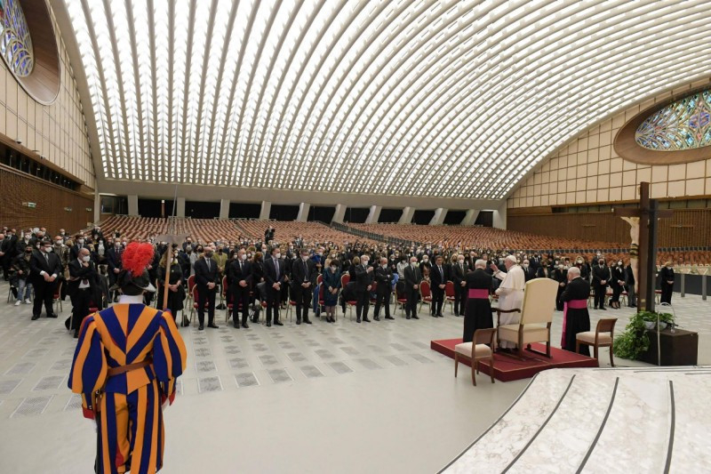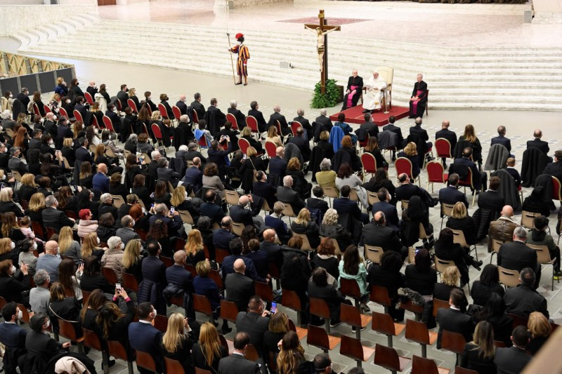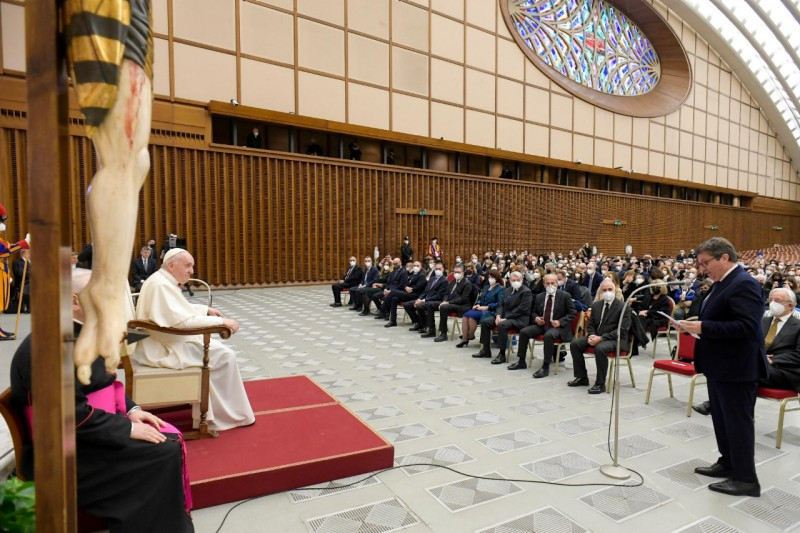 Kiemelkedő példája ennek Boldog Rosario Livatino, az első bíró, akit boldoggá avattak az Egyház történetében. Ő legyen segítőjük és vigaszuk az igazságszolgáltatásban dolgozóknak – fohászkodott a pápa. A maffia áldozatául esett, elkötelezett hívő katolikus Livatino nemcsak hiteles tanúságtételének erejét hagyta ránk, hanem az igazságszolgáltatásról alkotott világos képet is.