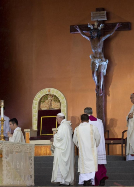 Az Istengyermek Jézus kezdettől fogva kísérte az evangélium elterjedését az országban – folytatta szentbeszédét a pápa. – Királyi ruhába öltözve, megkoronázva, kezében jogarral, földgolyóval és kereszttel, folytonosan az Isten uralma és a lelki istengyermekség közti kapcsolatra emlékeztet. Így szól hozzánk a mai evangéliumban: „Aki nem úgy fogadja az Isten országát, mint egy gyermek, az nem léphet be oda” (Mk 10,15) . A Santo Niño továbbra is hirdeti, hogy Isten kegyelmének világossága ráragyogott a világra, meghozva a rabszolgaságból való szabadítás örömhírét, lépteinket a béke, a jog és az igazságosság útjára irányítva. Egyúttal arra is emlékeztet, hogy hivatásunk Krisztus Országának az egész világon való elterjesztésére szól.