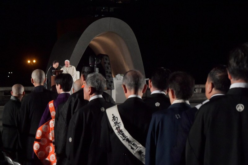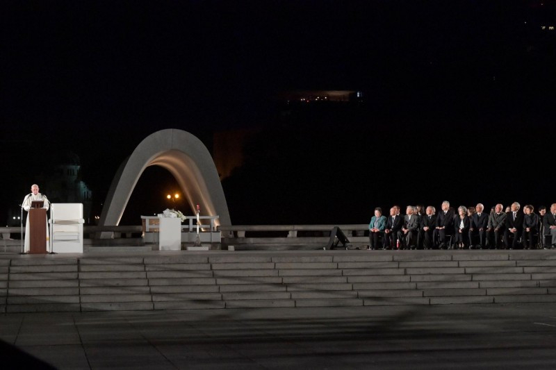 Emlékezni, együtt haladni, védelmezni. Ez három olyan erkölcsi követelmény, amelyek itt, Hirosimában még erősebb és egyetemesebb jelentést nyernek, és képesek megnyitni a béke útját. Következésképpen nem engedhetjük meg, hogy a mostani és az új nemzedékek elveszítsék a történtek emlékezetét, azt az emlékezetet, amely biztosíték és ösztönzés egy igazságosabb és testvéribb jövő építésére; terjedő emlékezés, mely felébreszti valamennyi férfi és nő lelkiismeretét, különösen azokét, akik manapság különleges szerepet játszanak a nemzetek sorsának alakításában; élő emlékezet, mely segít nemzedékről nemzedékre azt mondani: soha többé!