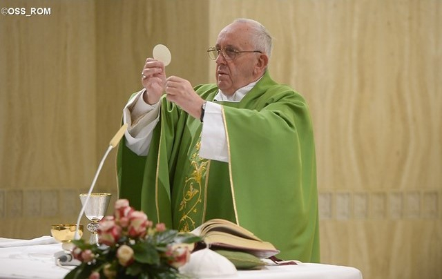 Végül homíliáját így zárta: „Kérjük az Úrtól, hogy imánk mindig a hitben gyökerezzen, a belé vetett hitből szülessen. A hit kegyelme ajándék, a hit. Ezt nem a könyvekből tanuljuk meg, hanem egy ajándék, amelyet az Úr ad. Kérjük: adj nekem hitet! »Hiszek, Uram!« – mondta az az ember, aki kérte Jézust, hogy gyógyítsa meg gyermekét: »Kérlek Uram, segítsd az én kis hitemet!« Hittel imádkozik és meggyógyul gyermeke. Kérjük az Úrtól a kegyelmet, hogy hittel tudjunk imádkozni és hogy biztosak legyünk abban: minden dolgot, amit kérünk tőle, megkapunk azzal a bizonyossággal, amelyet a hit ad nekünk. Ez a mi győzelmünk: a hitünk!”