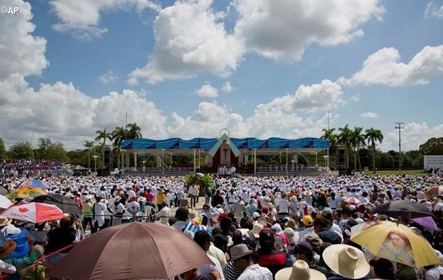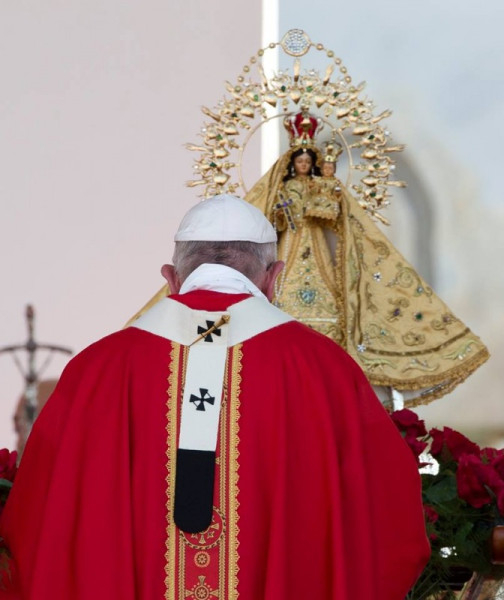 Most Szűz Máriára, a Cobrei Szeretet Szűzanyjára vetem tekintetemet, akit Kuba tárt karokkal fogadott, aki előtt örökre megnyitotta kapuit. Azt kérem tőle, hogy tartsa anyai tekintetét e nemes nép minden gyermekén, irgalmas tekintete figyeljen mindig oda mindannyiatokra, házaitokra, családjaitokra és azokra az emberekre, akik úgy érezhetik, nincs hely számukra. Őrizzen meg mindannyiatokat, ahogyan megőrizte szeretetében Jézust. Tanítson meg úgy nézni másokra, ahogyan Jézus nézett mindannyiunkra.