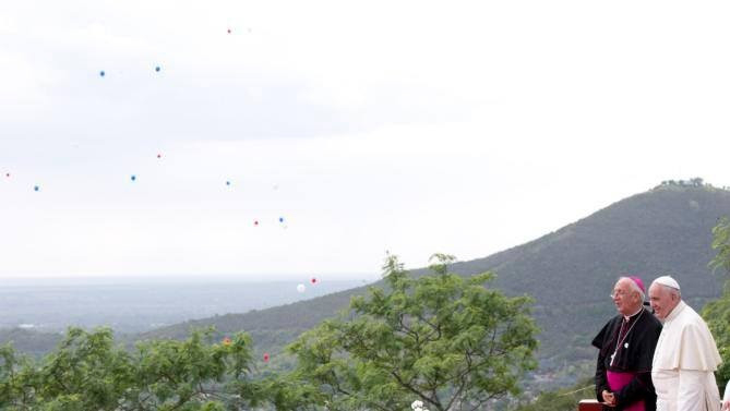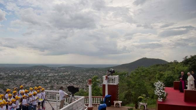 A hegy csúcsára helyezett Szent Keresztre tekintve kérte „a mindenható Istent, hogy világítsa meg a családok, a gyermekek, a fiatalok, a betegek és a szenvedők életét. Induljanak el Jézus nyomában, aki az egyetlen Út, amely az Istenhez vezet, és akinek a szeretete mindenkit magához vonz.”