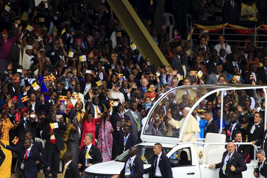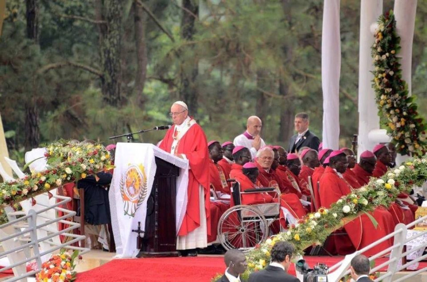 A namugongói kegyhelyen mintegy százezer hívő gyűlt össze, hogy részt vegyen a Lwanga Szent Károly emlékére bemutatott pápai szentmisén. Ferenc pápa beszédében a Szentlélek erejében tett tanúságtételről szólt.