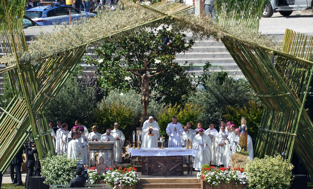 A szertartásra a város egy volt stadionjában került sor, ahol az oltárt egy zöld bambusznáddal, olajfákkal és növényekkel bekerített emelvényen állították föl, amely a pásztor kunyhójára emlékeztet, aki a bibliai Jó Pásztor nyomán tereli a hívek nyáját