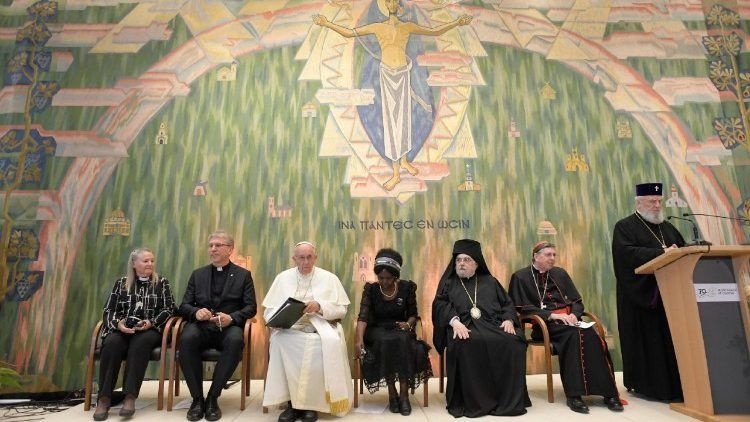 A megbocsátás megújít, a megbocsátás csodákat tesz! Péter megtapasztalta Jézus bocsánatát, és nyájának pásztora lett; Saul Pállá lett, miután bocsánatot nyert Istvántól; valamennyien új teremtménnyé születünk, amikor az Atya bocsánatát fogadva szeretjük testvéreinket. Csak ekkor tudunk valódi újdonságokat a világnak adni, mert nincs nagyobb újdonság a megbocsátásnál, mely a rosszat jóra változtatja. Ezt látjuk a kereszténység történetében. Megbocsátani egymásnak, testvérként felfedezni egymást százados viták és szakadások után mennyire jót tett és tesz ma is nekünk! Az Atya boldog, amikor szeretjük egymást, és szívből megbocsátunk egymásnak (vö. Mt 18,35). És akkor nekünk adja Lelkét. Kérjük ezt a kegyelmet: hogy ne sáncoljuk el magunkat megkeményedett szívvel, mindig csak a többiektől követelve, hanem tegyük meg mi az első lépést, az imában, a testvéri találkozásban, a konkrét szeretet gyakorlásában. Így hasonlóbbak leszünk az Atyához, aki számítás nélkül szeret. És ő kiárasztja ránk az egység Lelkét.