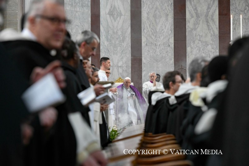 Kedves testvéreim! Hajtsuk le fejünket, fogadjuk a hamut, könnyítsünk a szívünkön! Induljunk el a szeretet útján: negyven kedvező napot kaptunk, hogy emlékeztessük magunkat arra, hogy a világot nem szabad személyes szükségleteink szűk keretei közé zárnunk, és hogy újra felfedezzük az örömöt nem a felhalmozandó dolgokban, hanem a rászorulókkal és a szerencsétlenekkel való törődésben. Induljunk útnak imádságban: