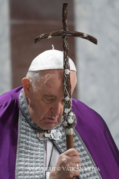 Testvéreim, ne pazaroljuk el ennek a szent időnek a kegyelmét: szegezzük szemünket a Megfeszítettre, és legyünk úton, nagylelkűen válaszoljunk a nagyböjt erős hívásaira! És az út végén nagyobb örömmel találkozunk majd az élet Urával! Igen, találkozunk vele, az egyetlennel, aki hamvainkból feltámaszt bennünket.