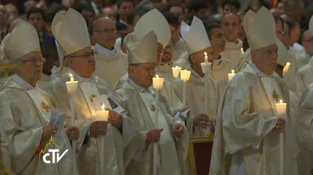 Következett a bevonulás a bazilikába: a diakónus fölemelve a húsvéti gyertyát három alkalommal énekli: „Krisztus világossága”, mire a hívek így válaszoltak, meggyújtva saját gyertyáikat: „Istennek legyen hála!”