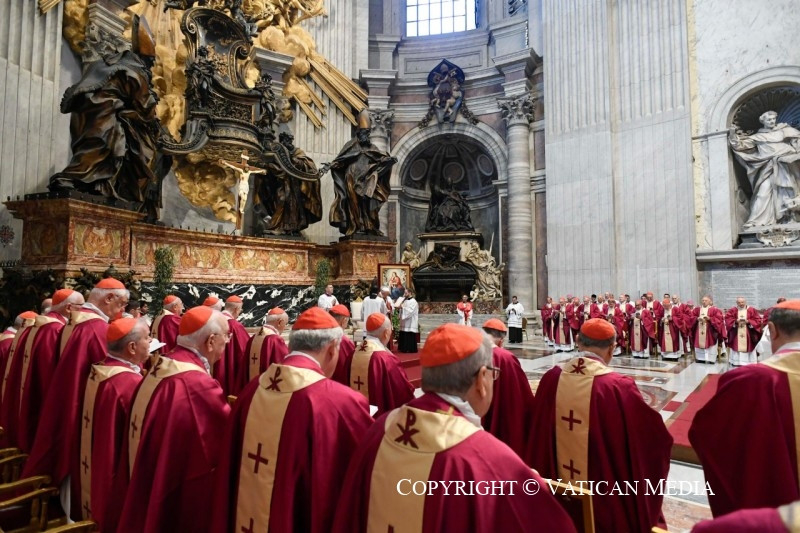 Jézus épp Naim városába készül bevonulni. Vele tartanak tanítványai, és „nagy tömeg” kíséri (vö. Lk 7,11). Amikor a városkapu közelébe ér, egy másik menet is arra vonul, de ellenkező irányba: egy özvegy anya egyetlen fiának temetésére mennek. Az evangélium ezt mondja: „Amikor az Úr meglátta, megesett rajta a szíve” (Lk 7,13). Jézus meglátja, és együttérzés ébred benne. XVI. Benedek, akiről ma az év során elhunyt bíborosokkal és püspökökkel együtt megemlékezünk, első enciklikájában azt írta, hogy Jézus programja „a látó szív” (Deus caritas est, 31). Hányszor emlékeztetett bennünket arra, hogy a hit elsősorban nem egy megértendő eszme vagy egy elfogadandó erkölcs, hanem egy személy, akivel találkoznunk kell, Jézus Krisztus, akinek szíve erősen dobog értünk, és amikor látja szenvedéseinket, szíve megesik rajtunk.