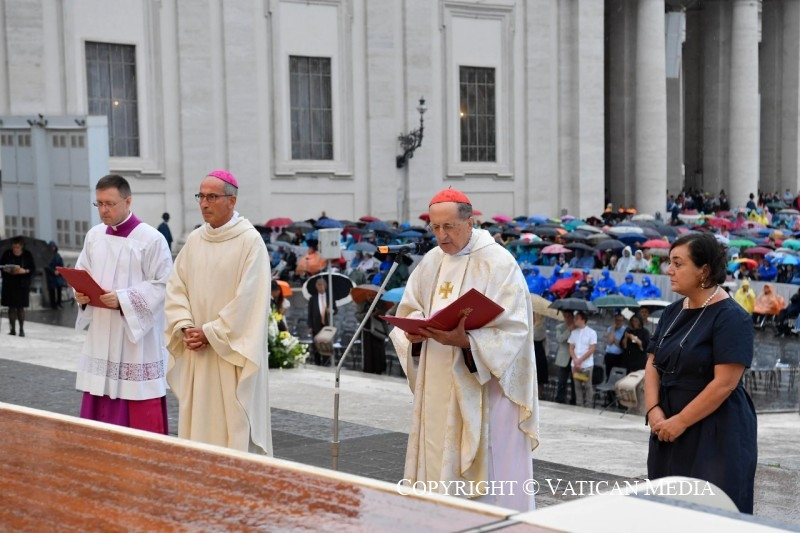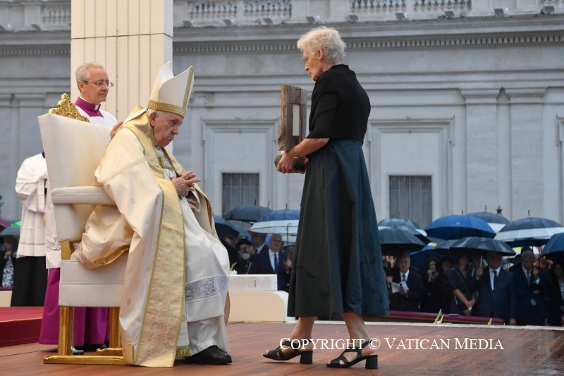„Isten örökké tartó szeretettel szeret bennünket” – mondta Luciani pápa (Úrangyala, 1978. szeptember 10.). Örökké tartó: életünk sosem sötétíti el, folytonosan ragyog ránk, és bevilágítja legsötétebb éjszakáinkat is. A Megfeszítettre nézve tehát arra kapunk meghívást, hogy ennek a szeretetnek megfelelően éljünk: hogy megszabaduljunk az Istenről alkotott torz elképzeléseinktől és bezárkózásainktól, hogy szeressük őt és felebarátainkat, az Egyházban és a társadalomban, azokat is, akik nem úgy gondolkodnak, mint mi, sőt ellenségeinket is.