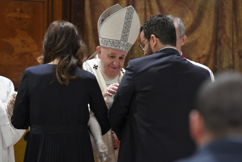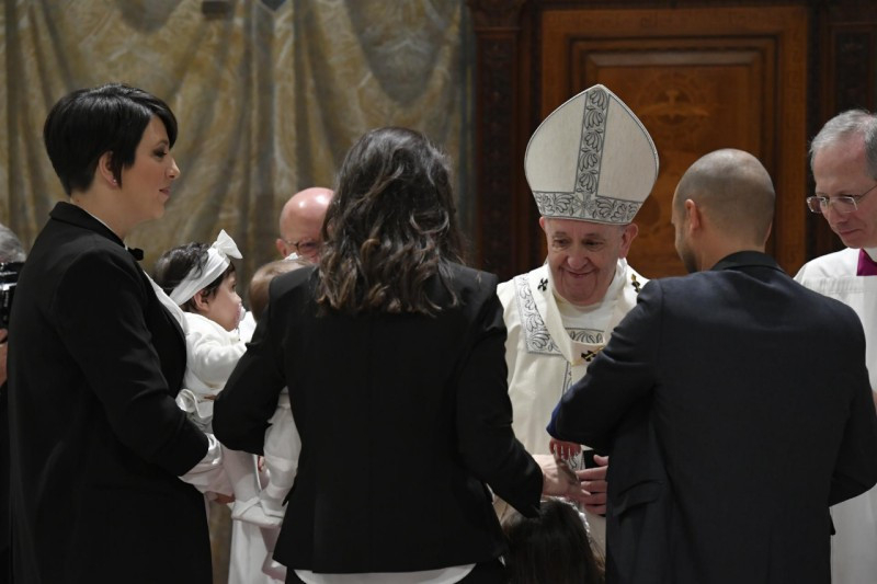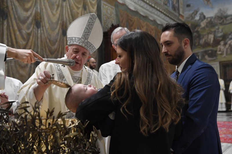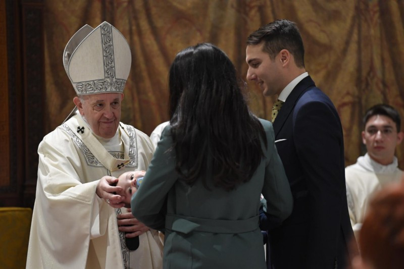 Jézus így válaszol Jánosnak: „Teljesítsünk be minden igazságot” (vö. Mt 3,15). Egy keresztelés igazságosságszolgáltatási aktus a gyermek számára. És miért? Mert a keresztségben kincset adunk neki, a keresztségben foglalót adunk neki: a Szentlelket. A gyermek [a megkeresztelésből] a Lélek erejével jön ki: a Lélek védelmezi, segíti majd őt egész életében. Ezért annyira fontos, hogy gyermekkorban kapják meg a keresztséget, hogy tudniillik a Szentlélek ereje segítse növekedésüket.