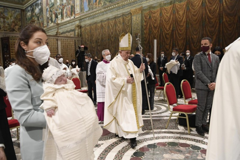 Azért jönnek, hogy keresztény identitást kapjanak. Egészen egyszerűen erről van szó. Gyermekeitek ma megkapják keresztény identitásukat. Nektek, szülőknek és keresztszülőknek pedig az a feladatotok, hogy ezt az identitást őrizzétek. Ez a feladatotok egész életetekben: gyermekeitek keresztény identitásának őrzése. Ez egy mindennapi munka: segíteni őket növekedni azzal a fénnyel, amelyet ma kapnak. Ez minden, amit mondani akartam nektek, ez a mai nap üzenete: őrizzétek a keresztény identitást, amelyért ma gyermekeiteket elhoztátok.