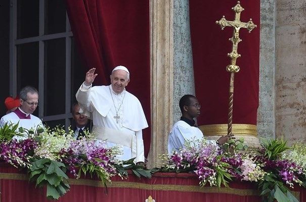 Kedves Testvéreim, boldog húsvéti ünnepeket kívánok mindnyájatoknak, akik sok országból érkeztetek ide, a Szent Péter térre, és azoknak is, akik a tömegkommunikációs eszközökön keresztül követnek minket. Vigyétek el otthonotokba és mindazoknak, akikkel találkoztok azt az örömhírt, hogy az élet Ura feltámadt, és szeretetet, igazságosságot, tiszteletet, megbocsátást hozott magával!