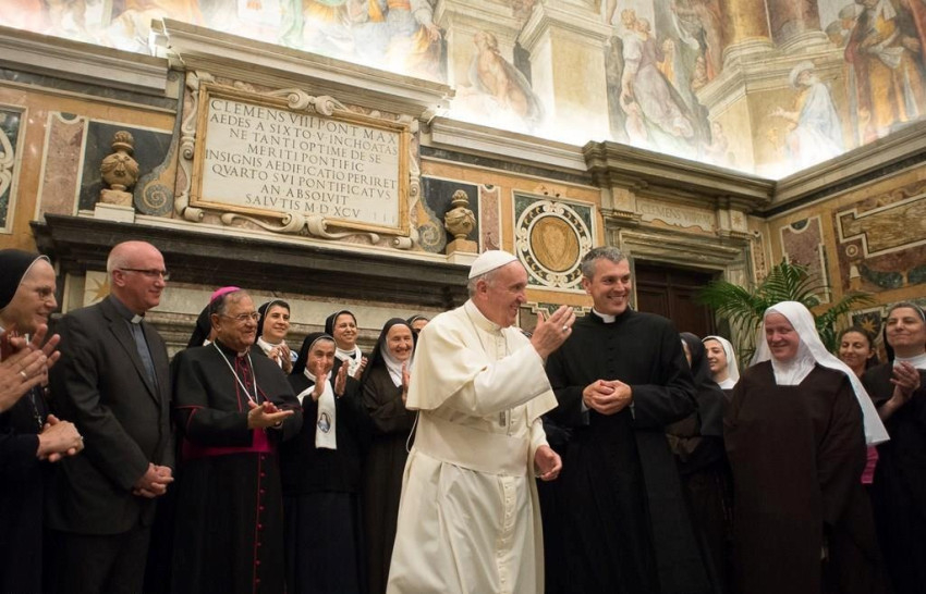 Ferenc pápa május 18-án, hétfőn délelőtt 11 órakor az Apostoli Palota Kelemen-termében rövid találkozó keretében fogadta a szerzetesnőket. Köszönetet mondott nekik, hogy a Közel-Keletről az Örök Városba utaztak a szertartásra.