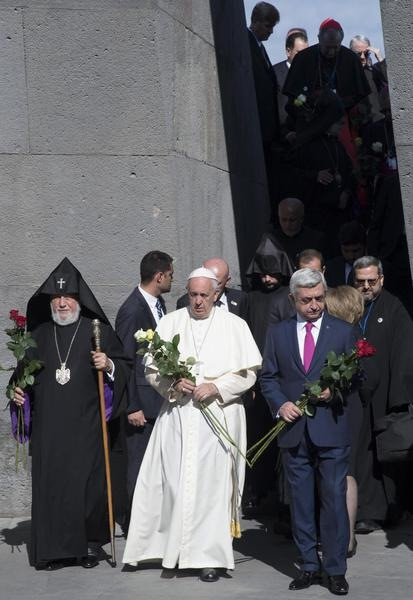 „Itt imádkozom, fájdalommal a szívemben, hogy soha többé ne forduljanak elő ilyen tragédiák, hogy az emberiség ne felejtsen, és le tudja győzni jóval a rosszat. Isten adjon a szeretett örmény népnek és az egész világnak békét és vigasztalást! Isten őrizze meg az örmény nép emlékezetét! Az emlékezést ne hígítsák fel, és ne feledkezzenek meg róla, hiszen az emlékezet a béke és a jövő forrása!”