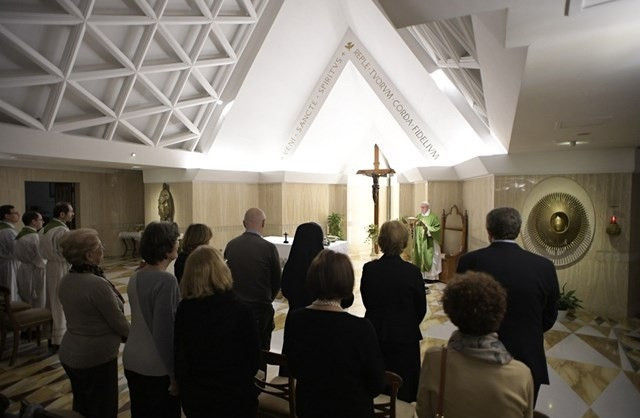 Ferenc pápa a napi olvasmányt is idézte (1Sám 1,9–20), mely Hannáról szól, aki imádkozik az Úrhoz, hogy adjon neki fiúgyermeket. Héli főpap pedig, az öreg és gyenge pap, aki már távol került Istentől és az emberektől, részegnek tartotta a magában imádkozó Hannát. Az asszony a szívében imádkozott, hang nélkül mozgatva száját. Ő magyarázza el Hélinek, hogy szerencsétlennek érzi magát, és fájdalmában öntötte ki lelkét az Úr előtt. És mialatt az asszony beszélt, Héli képes volt szívében közeledni hozzá, olyannyira, hogy azt mondja neki: „Menj békével! Izrael Istene adja meg neked, amit kértél.” Rájött, hogy hibázott, és hagyta, hogy szívéből fakadjon az áldás és a prófécia, és később Hanna megszülte Sámuelt.