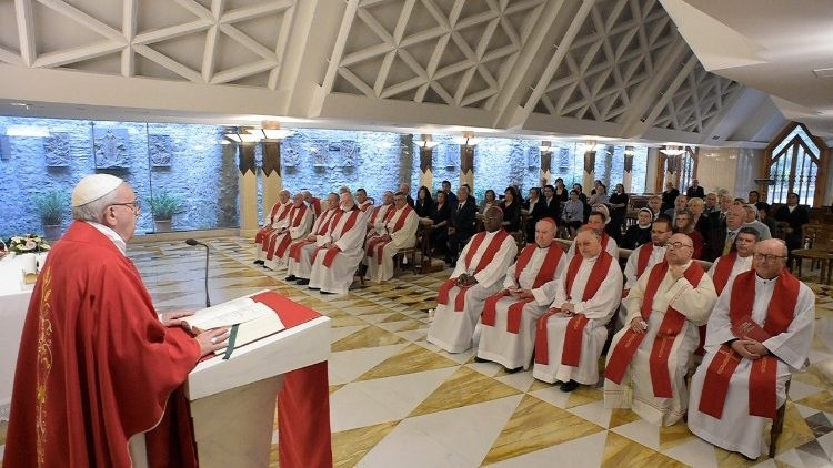 A mai szentlecke az Apostolok Cselekedeteiből rámutat a hithirdetés valódi főszereplőjére, mely nem más, mint a Szentlélek – kezdte homíliáját a pápa. A hithirdetés nem puszta prédikáció vagy bizonyos elképzelések átadása, hanem dinamikus mozgás, mely képes megváltoztatni a szíveket a Lélek működésének köszönhetően. „Láttunk jól megszerkesztett lelkipásztori terveket, amelyek azonban nem szolgálták az evangelizálást, mert öncélúak voltak, és nem tudták megváltoztatni a szíveket.” A pápa ezután kifejtette: „Jézus nem vállalkozói hozzáállással küld el minket, hanem a Szentlélekkel. Ez az igazi bátorság. Az evangelizálás igazi bátorsága nem az emberi makacsság. A Szentlélek adja meg nekünk a bátorságot, és visz minket előre.”
