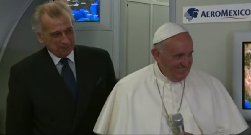 Szeretnék mondani valamit, egy igaz dolgot a mexikói népről. Gazdag nép, nagy gazdagsággal rendelkező nép, olyan nép, amely meglep… Olyan kultúrája van, évezredes kultúrája… Tudják Önök, hogy Mexikóban jelenleg hatvanöt nyelvet beszélnek, beleszámolva az őslakosokat is? Hatvanötöt! Nagy hite van a népnek, vallásüldözéseket is elszenvedtek, vértanúk is vannak, nemsokára szentté fogok avatni kettőt-hármat. Olyan nép… nem is lehet megmagyarázni. Olyan nép, amelyet nem is lehet megmagyarázni, hiszen a „nép” nem logikai kategória, hanem a misztikához tartozó kategória. A mexikói népet nem lehet megmagyarázni, ezt a gazdagságot, ezt a történelmet, ezt az örömöt, ezt a képességet az ünneplésre, és ezeket a tragédiákat, amelyekről Önök kérdeztek engem. Nem tudok mást említeni, csak ezt az egységet, és hozzátenném még azt, hogy ez a nép képes volt arra, hogy ne valljon kudarcot, nem söpörte el a sok háború, sem a most történő dolgok… Ott, Ciudad Juárezben tizenkét órás békeszünetet tartottak a látogatásom miatt: aztán majd folytatják az egymással szembeni harcot a drogkereskedők… Azt, hogy ennek a népnek még mindig ekkora életereje van, az csak a Guadalupei Szűzzel magyarázható. Ajánlom Önöknek, hogy komolyan tanulmányozzák a guadalupei eseményeket. Szűz Mária ott van. Nem találok más magyarázatot. Szép lenne, ha Önök mint újságírók… Vannak jó könyvek, amelyek elmagyarázzák azt is, hogy miként jött létre a festmény, milyen, mit jelent… És így meg lehetne érteni azt az oly nagyszerű, oly szép népet!