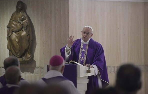 Azt javaslom, ne féljetek, amikor szívetekben ellenállást találtok. Inkább mondjátok világosan az Úrnak: „Nézd, Uram, igyekszem elrejteni ezt, azért teszem, hogy ne engedjem be Szavadat.” Ezek nagyon szép szavak, ugye? – vetette fel a pápa. Majd azt mondjuk: „Uram, nagy erővel siess segítségemre! A kegyelmed győzze le a bűn ellenállását.” Az ellenállás mindig az áteredő bűn gyümölcse, amelyet magunkban hordunk. Visszás dolog az ellenállás? Nem, szép dolog. A visszás dolog az, ha az Úr kegyelme elleni védelemként alkalmazzuk. Az ellenállás normális dolog. Azt jelenti, hogy azt mondjuk: „Bűnös vagyok, segíts, Uram!” Ezzel az elmélkedéssel készüljünk a közelgő karácsonyra – kérte Ferenc pápa csütörtök reggeli homíliájában.