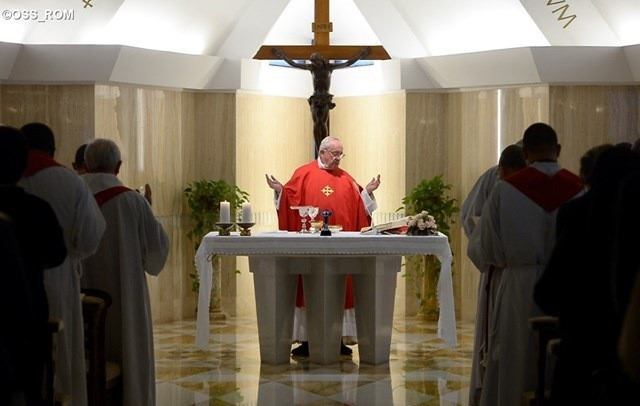 Itt azonban a tévedések logikája megfordul. Jézus ezt a nép vezetői emlékezetébe idézi, a Szentírásra utalva: „A kő, amit az építők elvetettek, az lett a háznak a szegletköve. Az Úr műve ez, a csoda szemünk láttára történt.” Szép dolog a Szentírásban ezt olvasni, még amikor Isten siralmairól is olvasunk, az Atyáéról, aki sír, amikor a népe nem akar engedelmeskedni, mert ő maga akar isten lenni – figyelmeztetett a Szentatya.