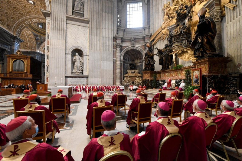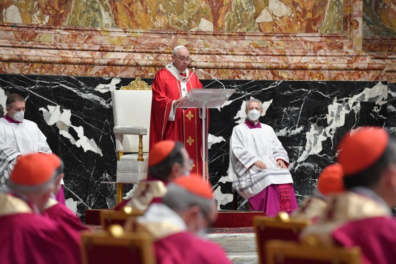 Ilyen lélekkel imádkozzunk azokért a bíborosokért és püspökökért, akik az elmúlt évben hagytak itt bennünket. Néhányan közülük koronavírus-fertőzés következtében haltak meg, nehéz helyzetben, mely súlyosbította szenvedéseiket. Most ízleljék meg ezek a testvéreink az evangéliumi felhívás örömét, melyet az Úr hűséges szolgáihoz intéz: „Jöjjetek, Atyám áldottai, vegyétek birtokba a világ kezdetétől nektek készített országot” (Mt 25,34).