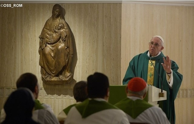 Minden férfi és nő visszautasíthatja az ajándékot, választhatja inkább saját hiúságát, saját büszkeségét, saját bűnét. De az ajándék ott van. Az ajándék Isten szeretete, azé az Istené, aki nem tud elszakadni tőlünk. Ebben áll Isten „tehetetlensége”. Mi azt mondjuk: Isten hatalmas, mindent megtehet! Kivéve egy dolgot: azt, hogy elszakadjon tőlünk! Az evangéliumban látjuk Jézust, aki sír Jeruzsálem fölött, és ez a kép segít megérteni valamit ebből a szeretetből. Jézus sírt! Könnyeket hullatott Jeruzsálem fölött, és ebben a sírásban benne van Isten egész tehetetlensége: az, hogy képtelen nem szeretni, elszakadni tőlünk – magyarázta a Szentatya.