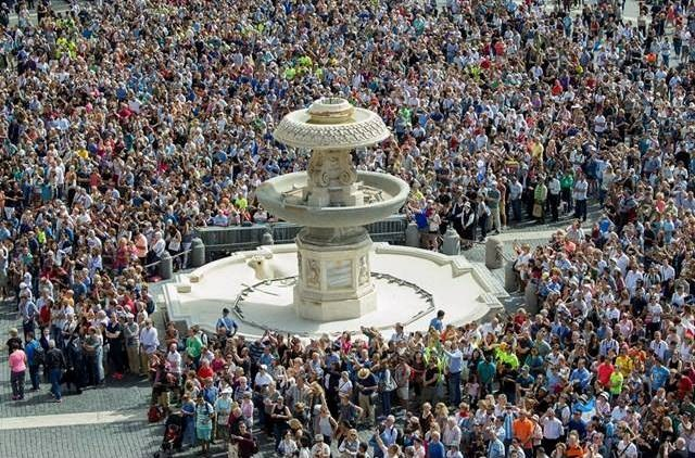 Jézus azt akarja, hogy ennek a gazdának a tekintetét nézzük: azt a tekintetet, amely meglát minden munkára váró munkást, és hívja őket dolgozni a szőlőjébe. Ez a tekintet figyelmes és jóságos! Ez a tekintet hívogat, biztat, hogy keljünk fel, hogy induljunk útnak, mert életet akar adni valamennyiünknek, teljes, elkötelezett, ürességtől és tétlenségtől mentes életet. Olyan Isten ő, aki senkit nem zár ki, és azt akarja, hogy mindenki elérje a maga teljességét. Ilyen a mi Istenünk szeretete, a mi Istenünké, aki Atya!
