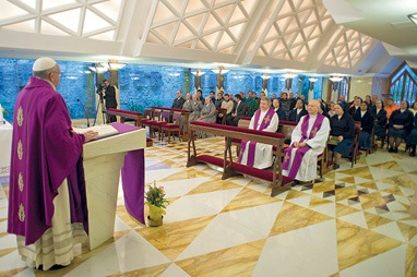 A Szentatya a mise első olvasmányából kiindulva fejtette ki gondolatait. Ozeás próféta (Oz 14,2–10) szavai nyomán ezt mondta: Az Úr figyelemmel kísér bennünket és gyöngéd szavakat intéz hozzánk. Még akkor is, amikor keményebbnek hangzó beszéddel szólít a megtérésre, valójában szeretettel teli sóvárgás hangzik szavaiban. Az Atya buzdítása ez, aki ezt mondja fiának: „Térj meg az Úrhoz, a te Istenedhez”. Térj meg, itt az ideje, hogy visszatérj a szülői házba. Csak ezekkel a szavakkal tudunk órákat tölteni imádkozva.