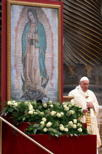 A nagy latin-amerikai haza nemzetei és népei emlékeznek ma hálával a Szűzanya látogatására és közelségére, vele együtt énekeljük a Magnificatot, és rábízzuk népeink életét. Amikor a Szűzanya megjelent Szent Juan Diegónak a Tepeyac-dombon, úgy mutatkozott be mint a „mindig tökéletes Szűz Mária, az igaz Isten Anyja. Készéggel sietett, hogy átölelje az új amerikai népeket. Olyan volt, mint a nagy égi jel, a napba öltözött asszony, aki magára vette az őslakos népek kulturális és vallási jelképrendszerét, meghirdette, és odaadta a Fiát a gyötrelmes sorsú meszticek új népeinek – fogalmazott a pápa.
