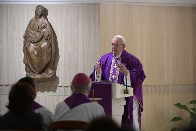 A Szentatya ezt követően utalt a napi evangéliumra, amely arról szól, hogy a törvénytudók köveket ragadtak, hogy megkövezzék Jézust. Ölésre használt kövekről van szó, hogy elhomályosítsák a feltámadás igazságát. Végül homíliája központi buzdításához tért vissza: „Az Úr hűséges, ismer és szeret engem. Nem hagy soha magamra. Kézen fogva vezet. Mi többet kívánhatok még? Mit kell tennem? Ujjongani a reményben, mert az Úr szeret téged, mint egy apa és egy anya!” – zárta csütörtök reggeli prédikációját Ferenc pápa.