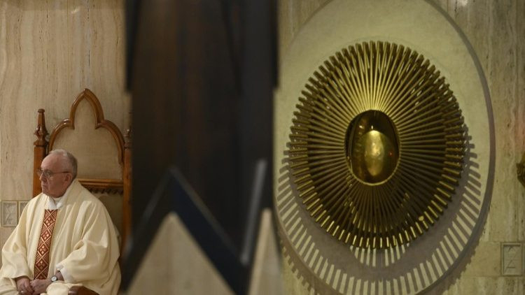 A Szent Márta-ház kápolnájában bemutatott reggeli szentmisét ezúttal is szentségimádással és eucharisztikus áldással zárta a Szentatya. A híveket lelki áldozásra buzdította, majd elimádkozta a Regina Coeli kezdetű Mária-antifónát.