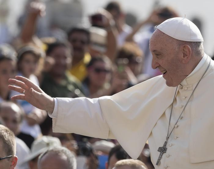 Az Úr nem olyan férfiakat és nőket akar, akik rosszkedvűen bandukolnak mögötte, és az örvendezés szele nem fúj szívükben. Kérdezem tőletek, akik itt vagytok a téren – mindenki magában válaszoljon –: a ti szívetekben ott fúj az örvendezés szele? Mindenki tegye fel magának a kérdést: „Ott van a bensőmben, ott fúj a szívemben az örvendezés szele?” Jézus olyan követőket akar, akik megtapasztalták, hogy a vele való együttlét végtelen boldogságot ad, amit az élet minden egyes napján újból meg lehet kapni. Isten országának az olyan tanítványa, aki nem vidám, aki szomorú, az nem evangelizálja ezt a világot. Nem a retorika fegyvereinek élesítésével válik valaki Jézus hirdetőjévé: te beszélhetsz, beszélhetsz, beszélhetsz, de ha nincs meg benned valami más… Hogyan válhatunk Jézus hirdetőjévé? Ha megőrizzük szemünkben az igazi boldogság ragyogását. Sok keresztényt látunk – magunk között is –, akik a hit örömét árasztják a szemükkel. A szemükkel!